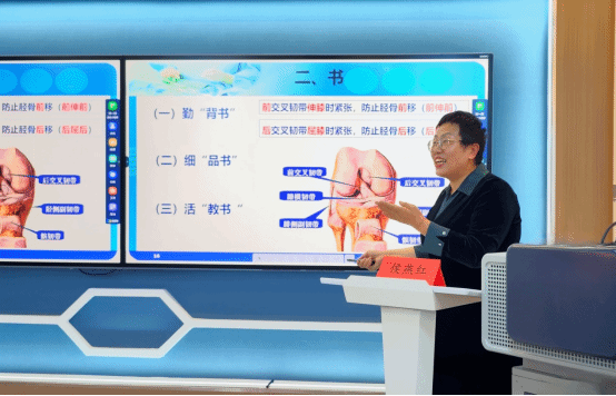 “解剖学是医学的‘入门钥匙’,更是教育者理解‘立德树人’的‘具象样本’。” 侯燕红教授开篇便点明学科与育人的内在关联。在她看来,解剖教学中对人体结构的精准探寻,与教育中对学生成长的悉心引导高度契合,正如解剖时需“辨清每一条神经、找准每一根血管”,育人时也需“读懂每一个学生的思想、呵护每一份职业的初心”。这种将学科特质与教育使命相融合的视角,让“培根铸魂”不再是抽象理念,而是可感知、可实践的具体行动。她从守“初心”、肯“潜心”、保“忠心”,分享了自己的学医源动力;围绕勤“背书”、细“品书”、活“教书”,阐释了自己的扎实教书育人成长路;通过学“党史”、明“思想”、树“理想”,抒发了对医学事业的责任和担当;以铸“师魂”、精“育人”、服务人,展现了作为师者的温暖和关爱。